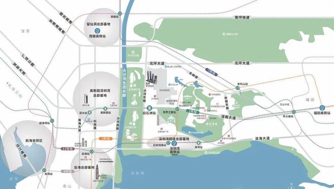 :西临深圳湾高新区总部基地、后海总部基地,南接深圳湾超级总部基地,三大超级总部环绕,汇聚城市高端产业与人才;